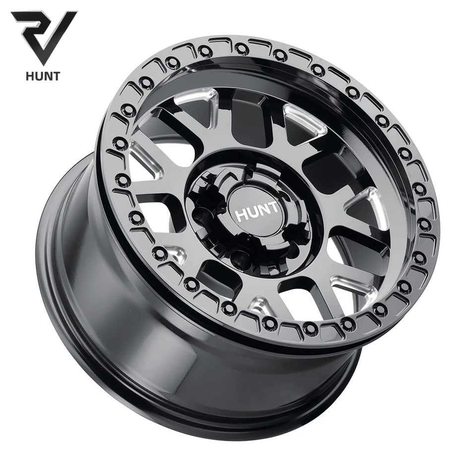 Jantes Beadlock personnalisées Hunt 17 18 20 pouces 5x127 6x135 mm Noir brillant usiné forgé pour Ford Jeep Land Rover Tout-terrain