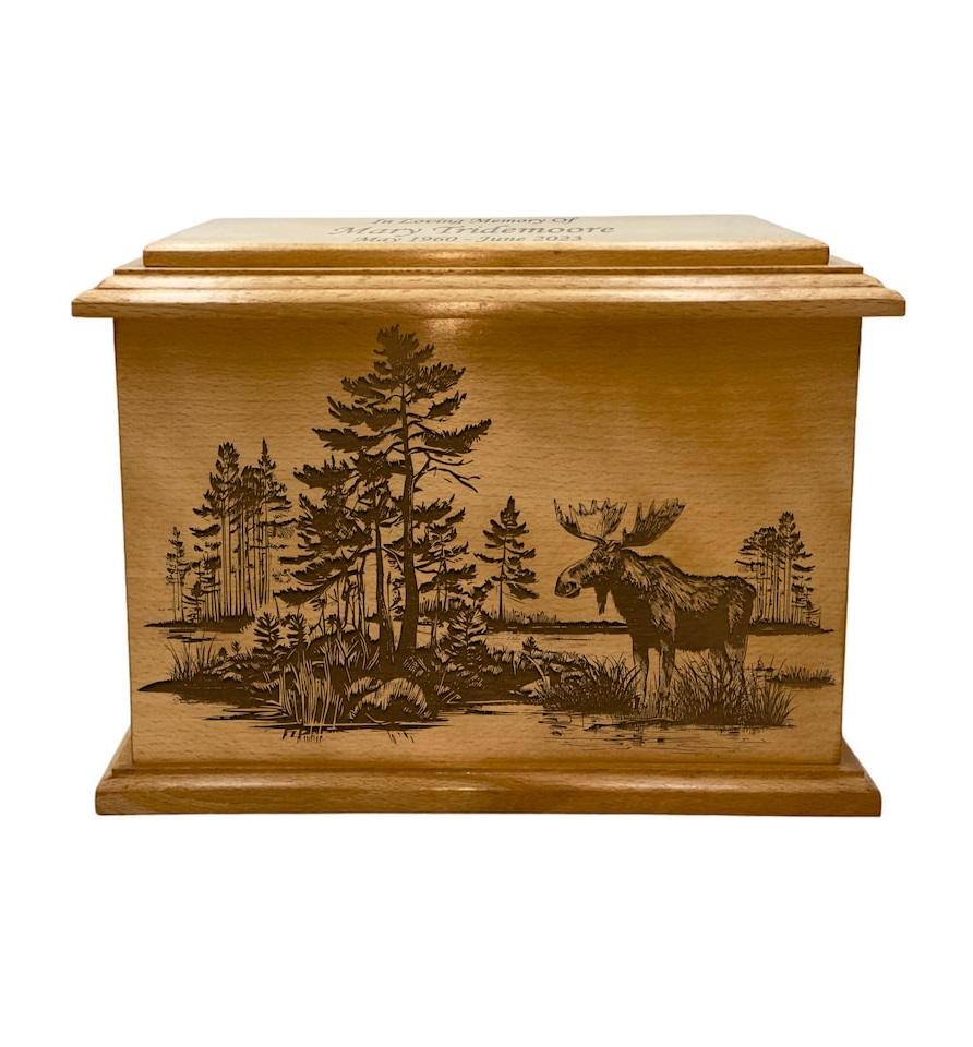 Urne funéraire de chasseur taille adulte en bois orignal funéraire personnalisé urne wapiti cerf chasse urne en bois avec gravure