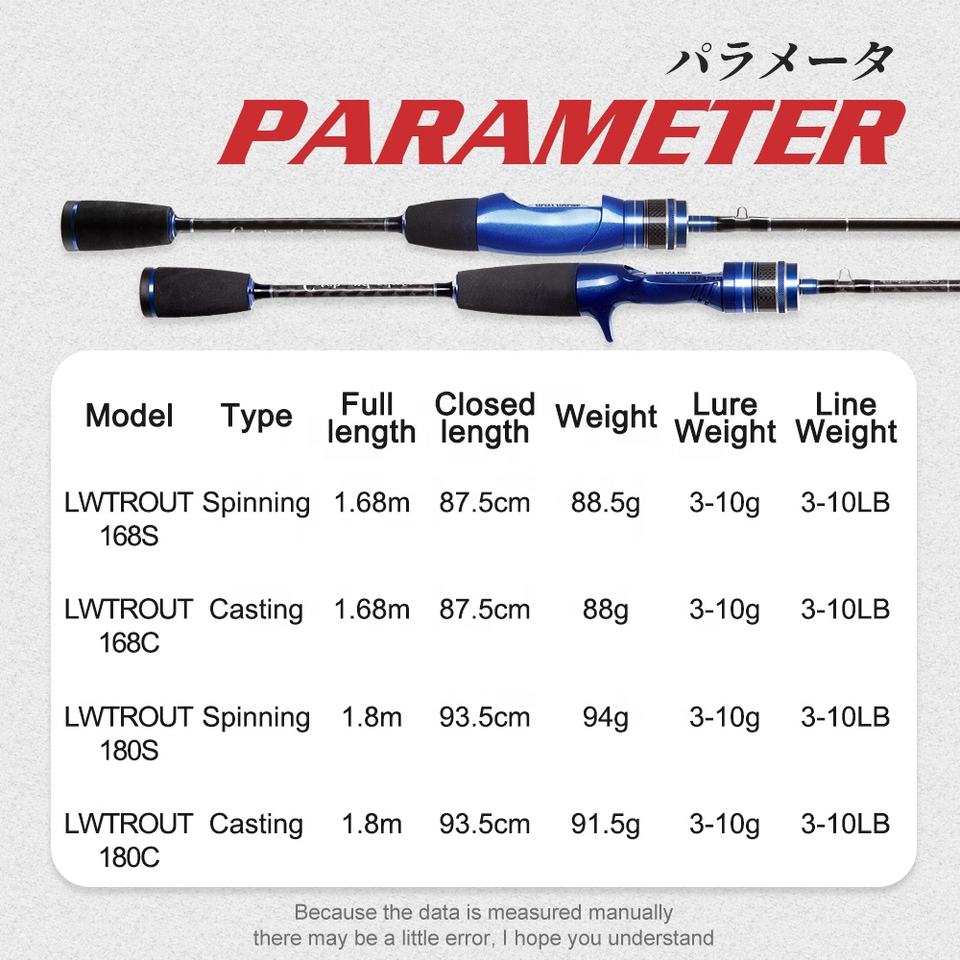 Hunthouse cannes à pêche de couleur bleue 1.68m 1.8m Fuji eau douce Ultra Light spinning casting canne à pêche 3-10g canne à truite