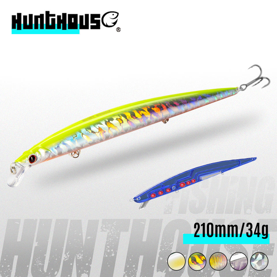Leurre de pêche artificiel Hunthouse Floating Minnow, 8 couleurs, 210 mm, 34 g, pour la pêche à la traîne en eau salée, longue portée, yeux 3D, leurre dur