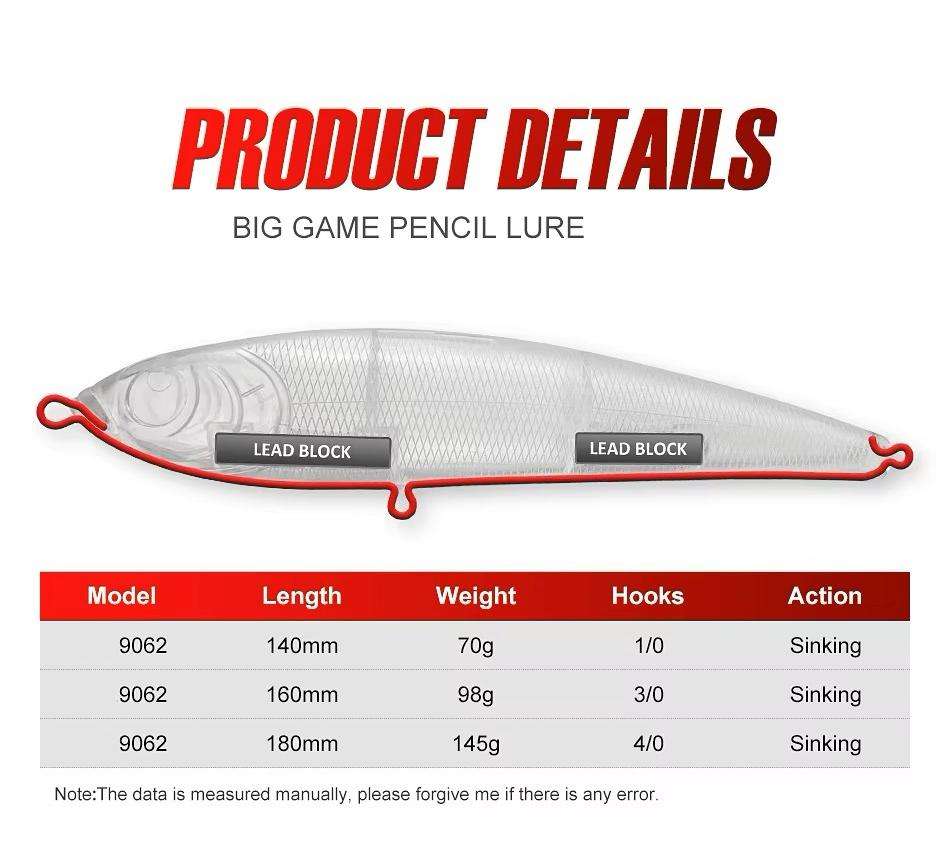 Hunthouse haute qualité 160mm leurre d'eau salée bloc de plomb leurres de pêche japonais coulant crayon leurre
