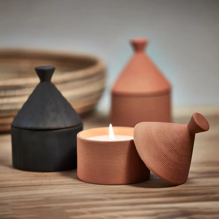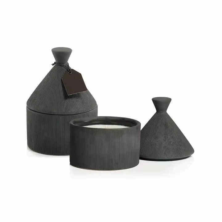 Pot de bougie en céramique en forme de cabane avec couvercle cylindre de saint valentin impression pot de bougie en terre cuite en céramique