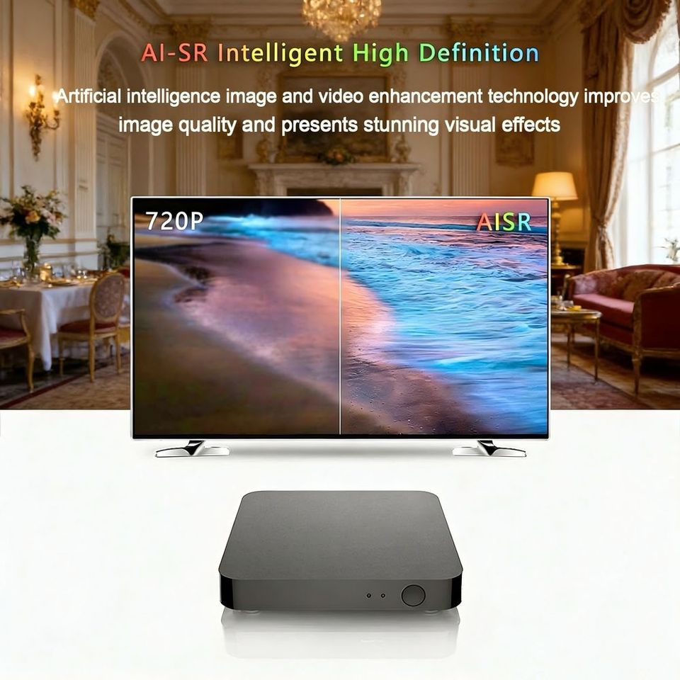 Boîtier TV Android Hutron6 X5M 4K HDR10+ S905X5M Quad Core 4 Go 32 Go WiFi 6 BT5.0 avec décodage AI-SR AV1 pour le streaming Home Cinéma