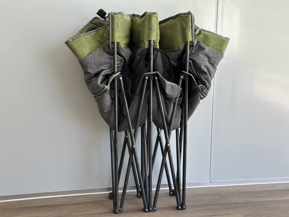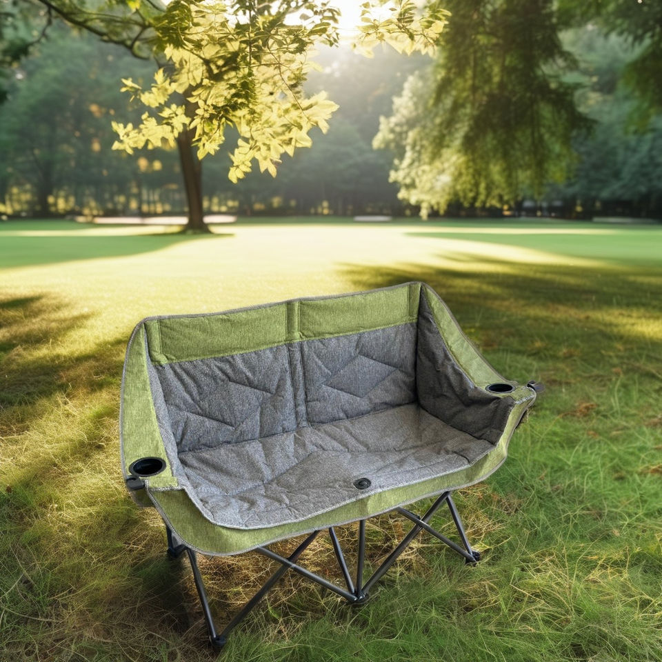 Huy Gia Modern Double-Seat Outdoor Folding Camping Chair with Printed Collapsible Armrests Parks Couples Metal Outdoor Furniture