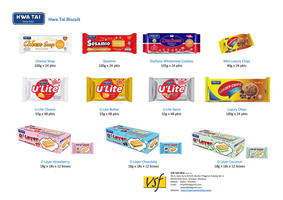 Hwa Tai Choice Boîte Assortie 600g X 6 Boîtes Vitamine a B1 B2 B6 D Calcium Fer Sans Cholestérol Sans Gras Trans Sans MSG