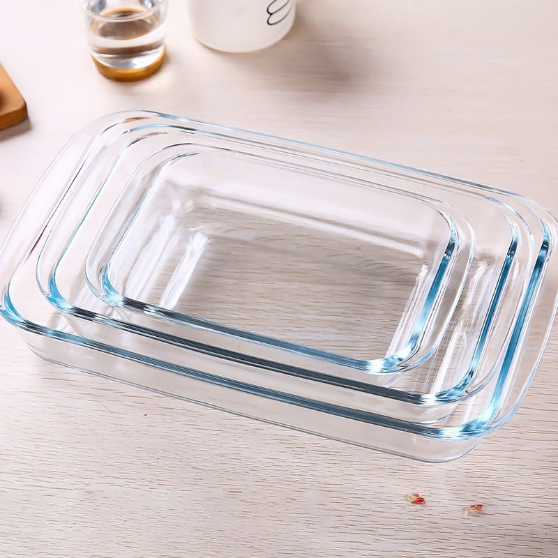 Hxglass Rectangulaire 1,7 L 2,8 L 4,2 L Plateau de cuisson en verre trempé avec couvercle Accessoire de four Casseroles Empilable Récipients alimentaires