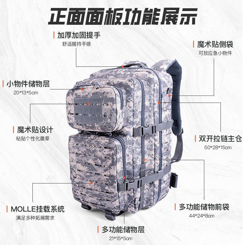 Sac à dos tactique Hy8318 grande capacité pour la randonnée et le camping en plein air, unisexe, couleurs ACU et CP, sangles en sangle tissée