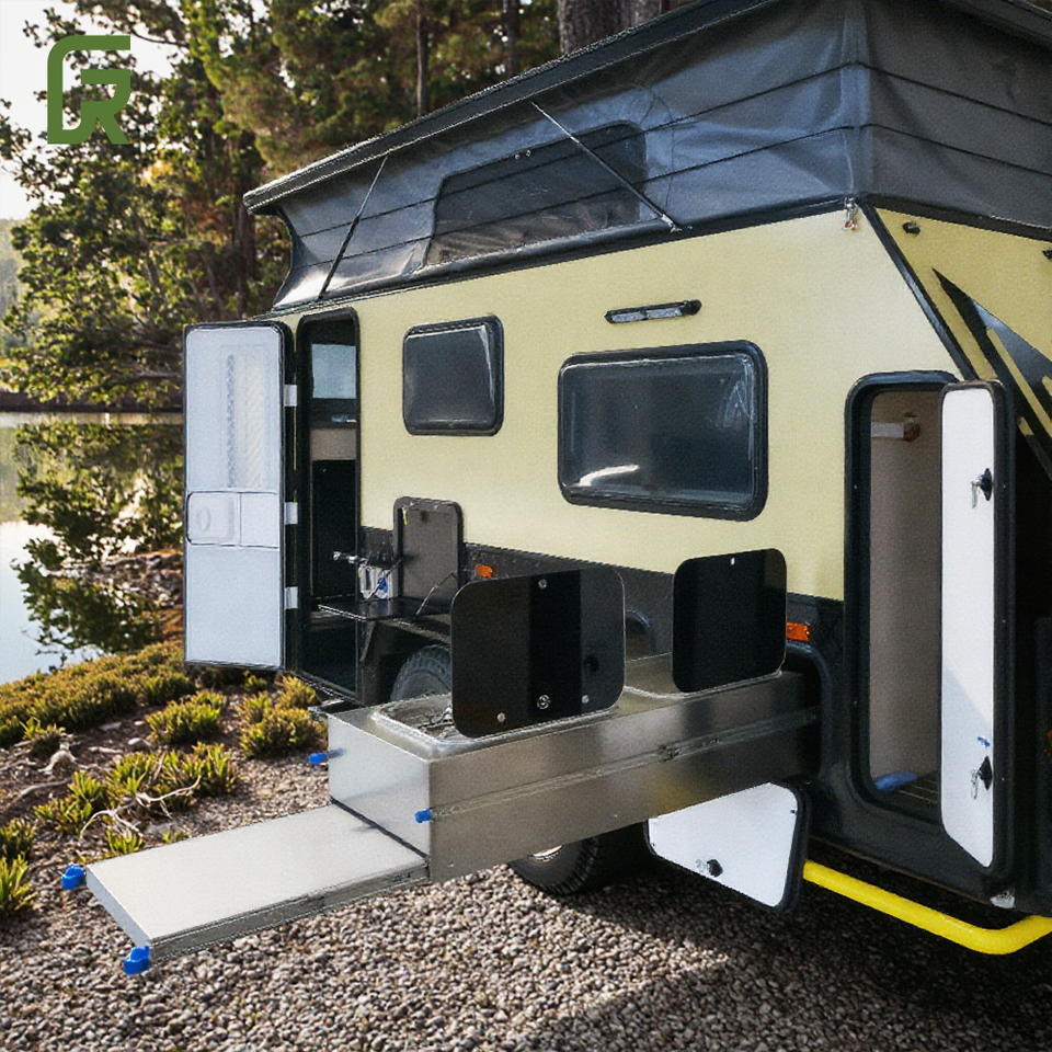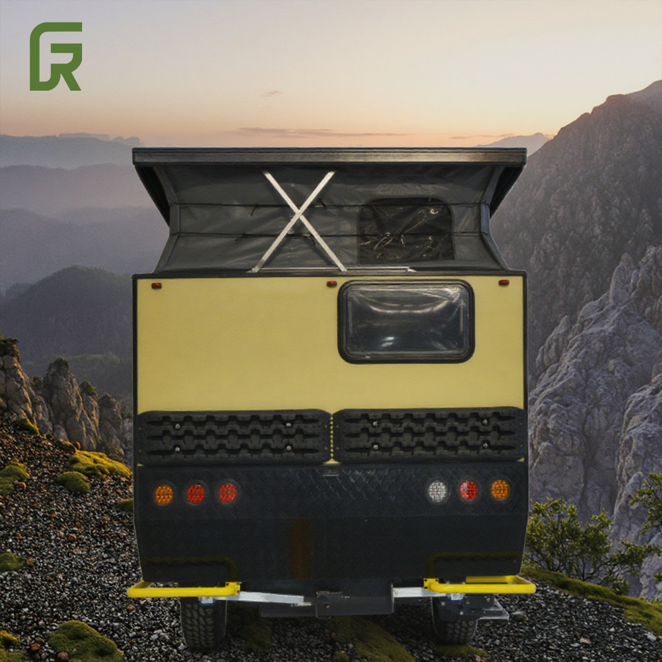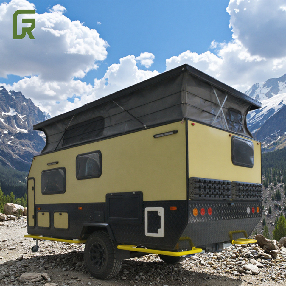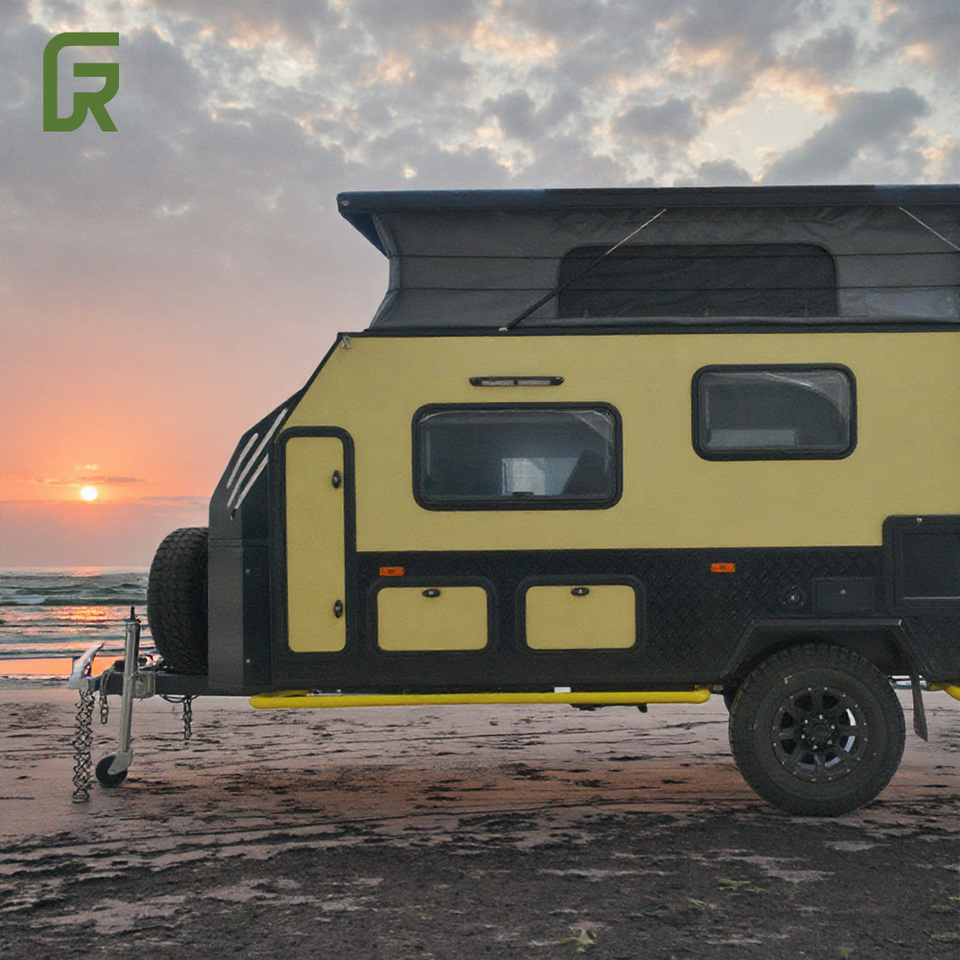 Remorque hybride en fibre de verre pour camping-car, caravane solaire électrique à double essieu, toit de luxe, camping-car, type tout-terrain moderne