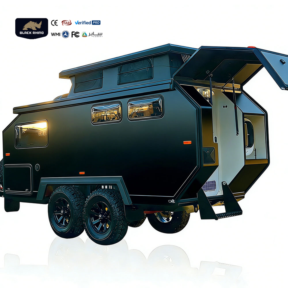 Caravane hybride à double essieu, toit ouvrant, remorque de voyage tout-terrain avec panneau solaire, remorques de camping pas chères pour le camping