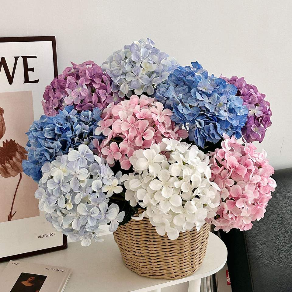 Bouquet de fleurs artificielles d'hortensias en soie, haute simulation, rose, bleu, blanc, violet, pour décoration intérieure et accessoires de mariage