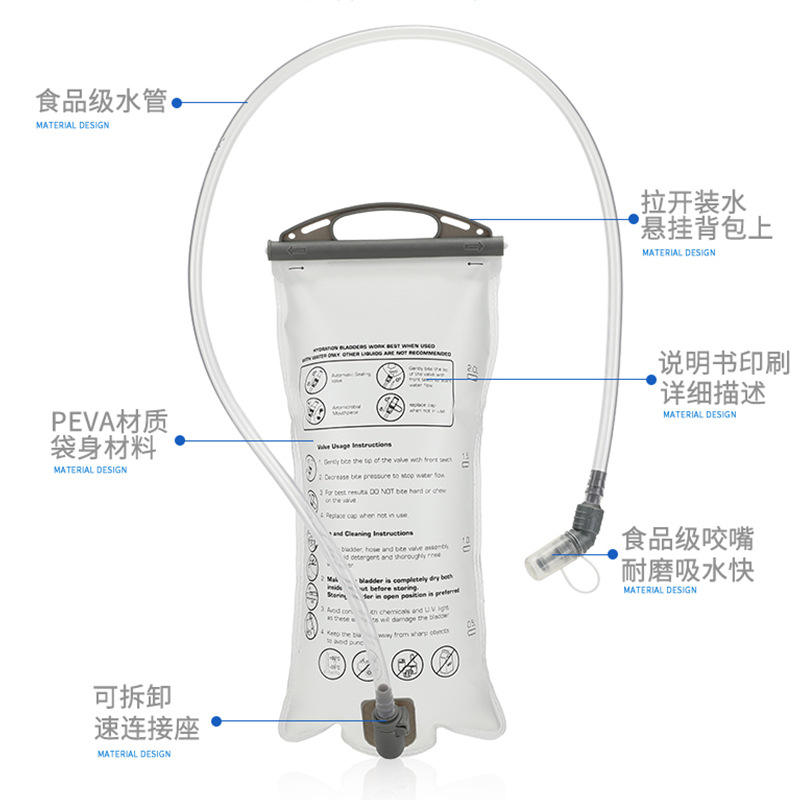 Poche à eau 2L en matériau Peva, durable, pour la randonnée, le camping, la course à pied et le cyclisme