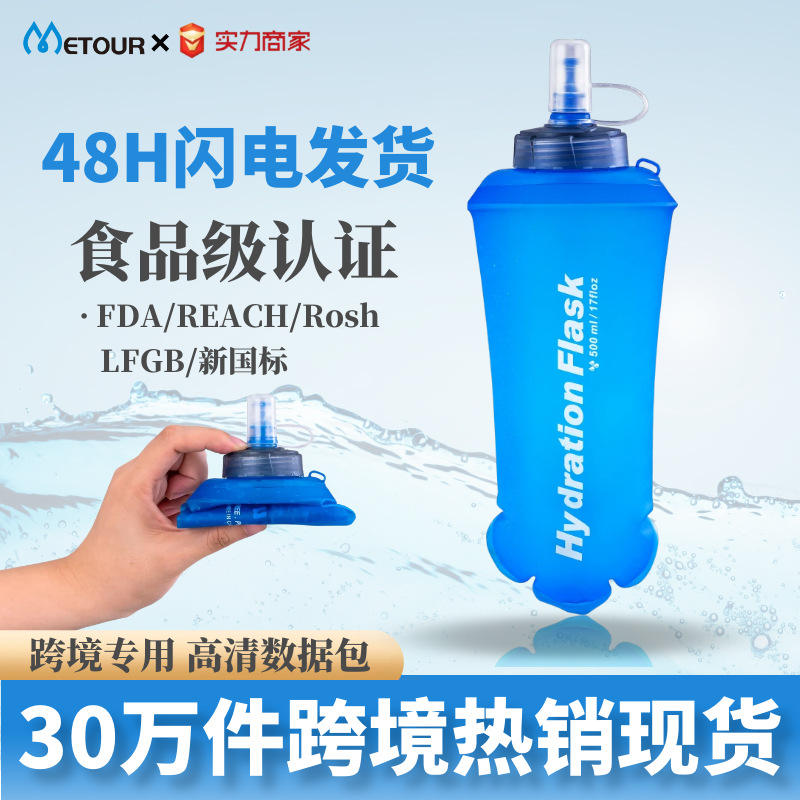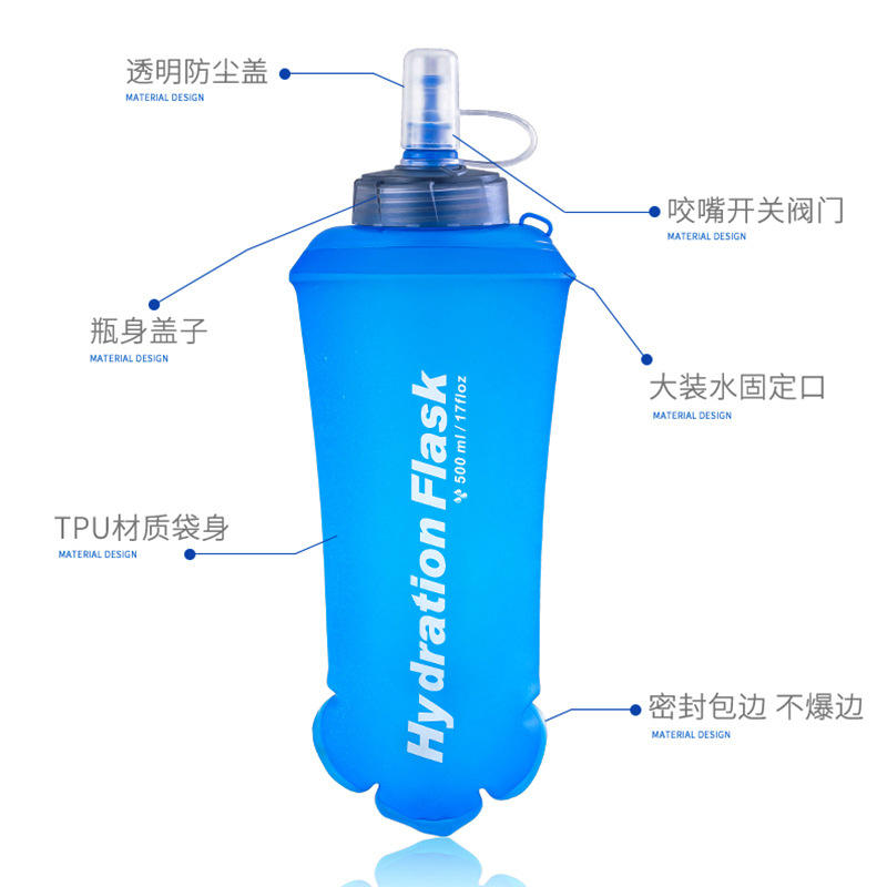 Bouteille d'eau pliable en TPU de 500 ml pour les sports de plein air, la course à pied et le cyclisme