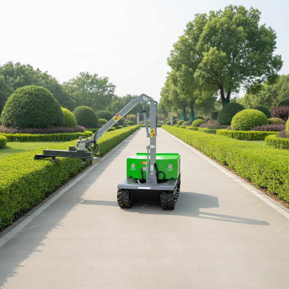Machine de taille d'arbres électrique hydraulique sur chenilles avec bras télescopique, coupe-arbre à batterie pour grandes exploitations agricoles et vergers