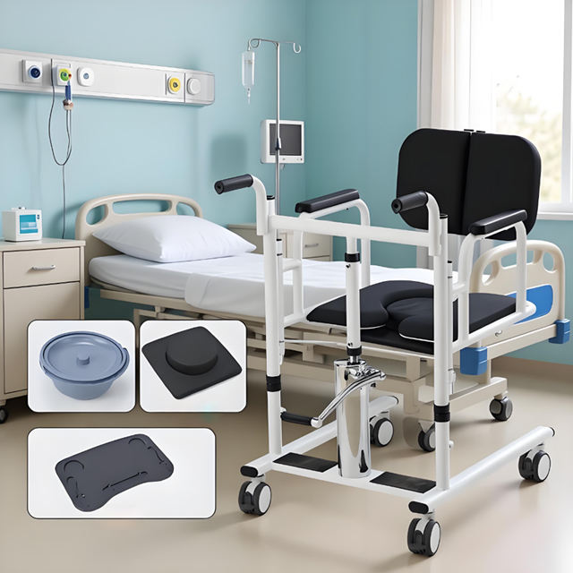 Chaise de transfert hydraulique pour patients avec aide à la marche et commode pour personnes handicapées