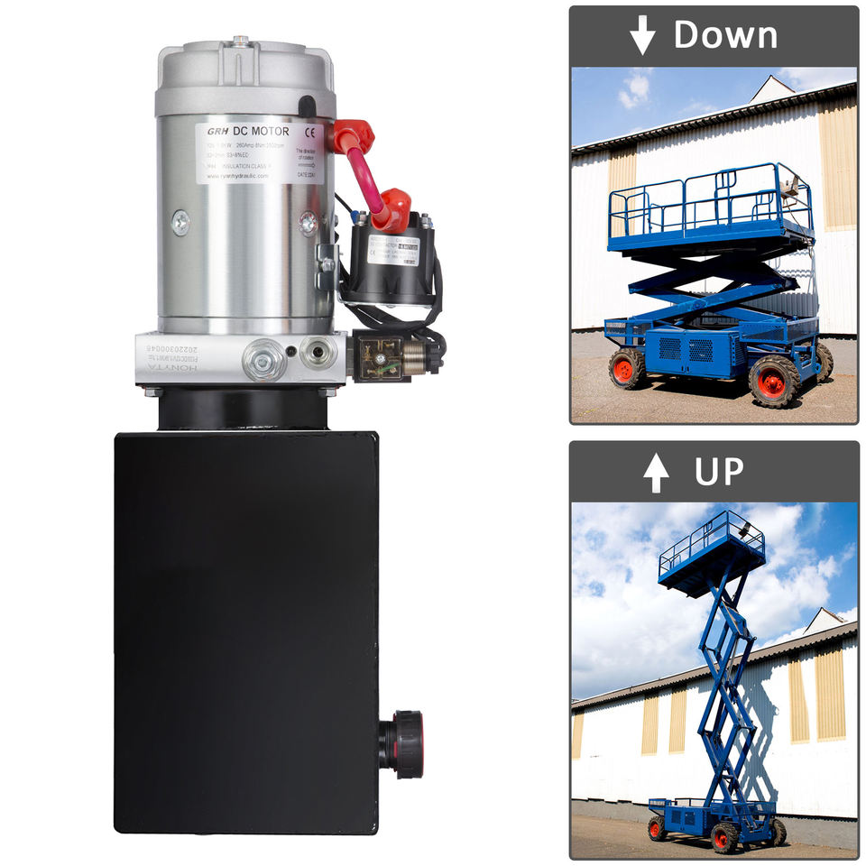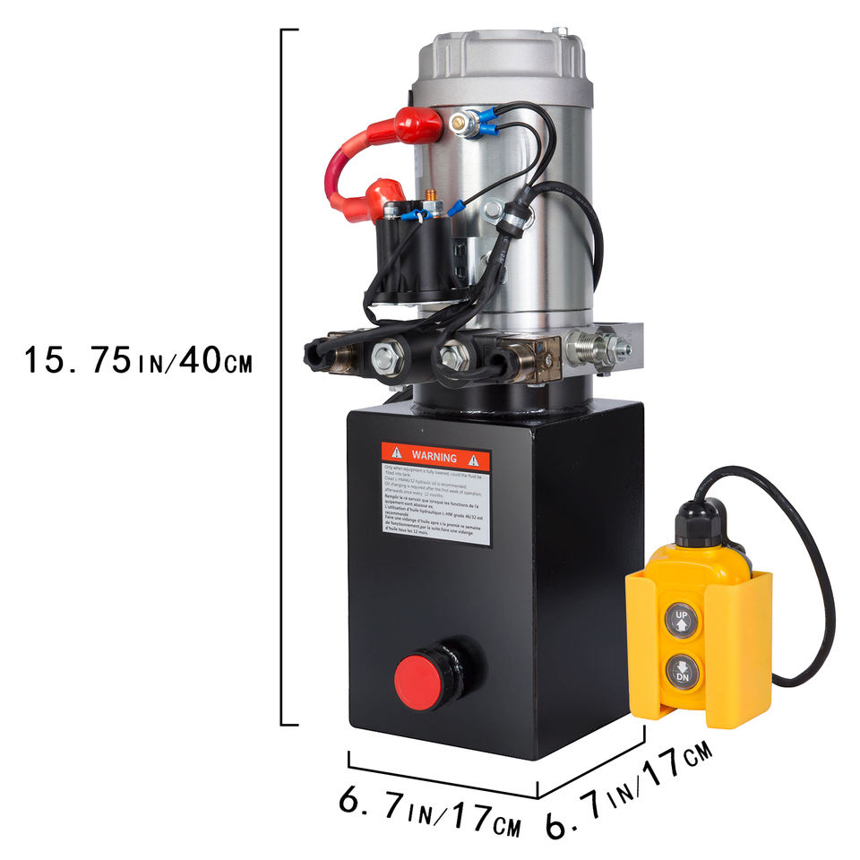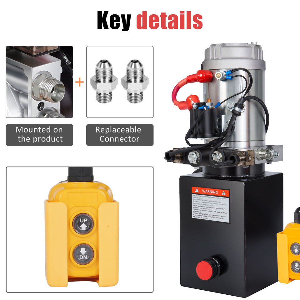 Unité hydraulique avec réservoir d'huile métallique de 4 litres, moteur 12V DC, pompe hydraulique à double effet pour levage de voitures et remorques à benne basculante