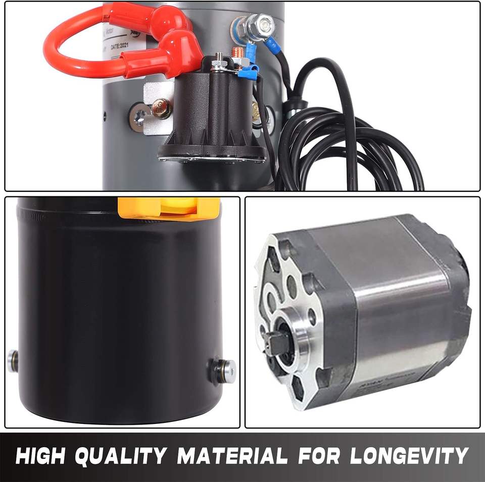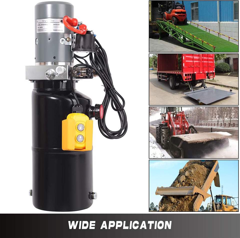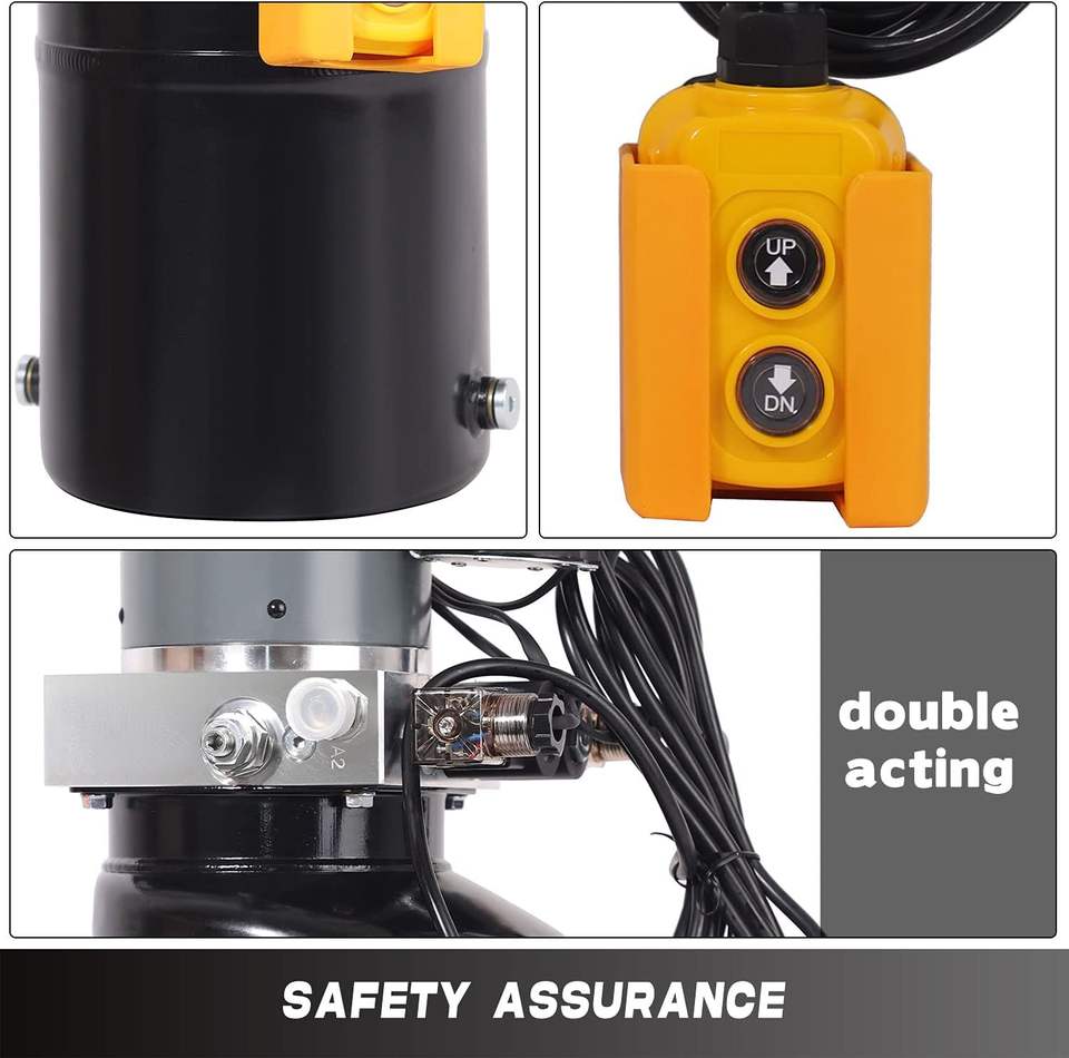 Unité hydraulique avec réservoir d'huile en fer de 8 litres, moteur 12V DC, pompe à double action pour levage 4M, poignée de commande