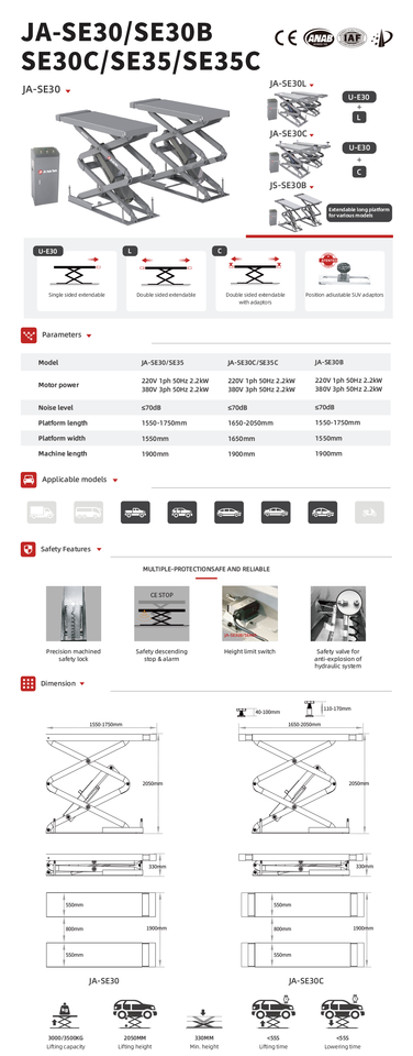 JA-SE30 hydraulic scissor liftNuméro de Type