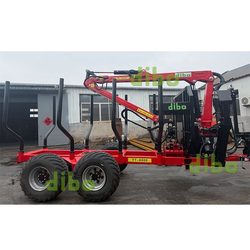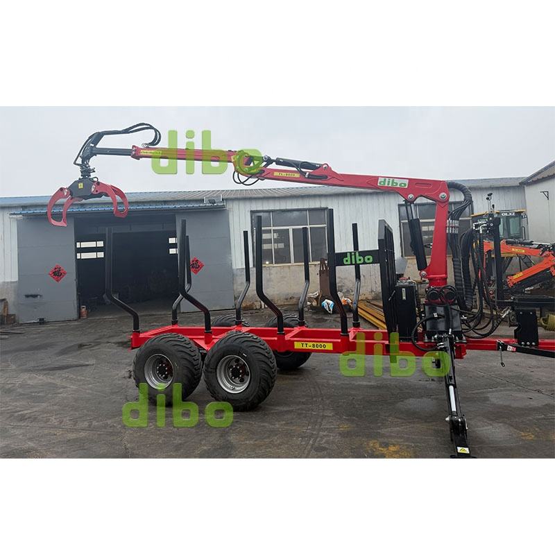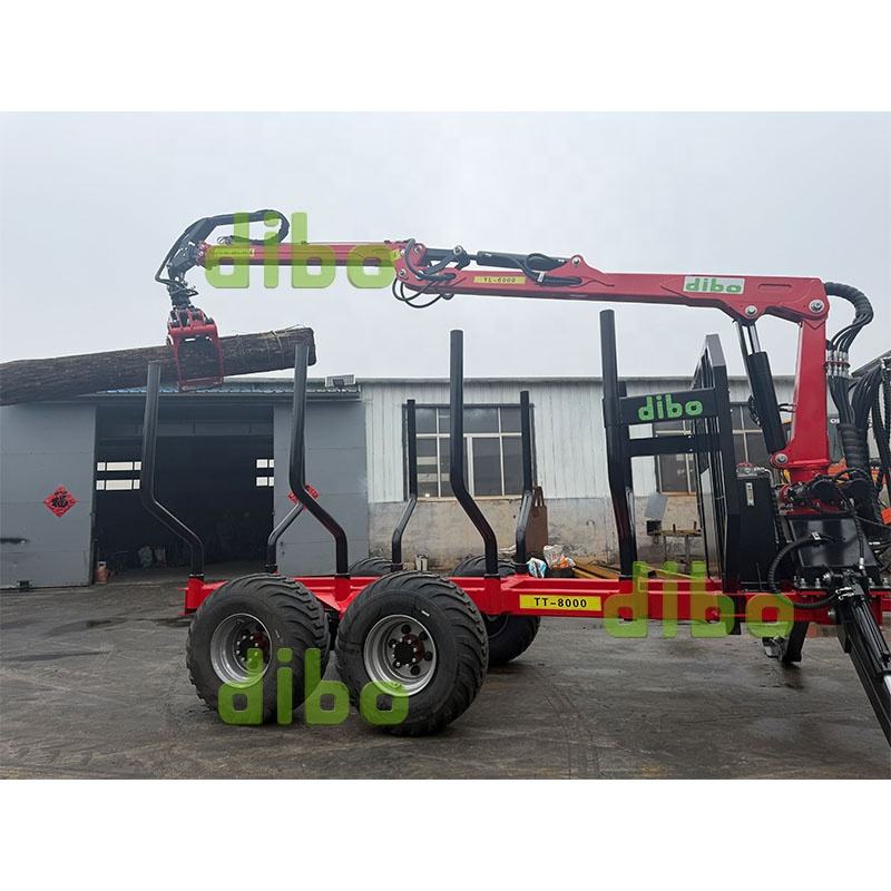 Remorque forestière télescopique de 8 tonnes homologuée TUV CE pour le transport du bois, avec grue à bois de 6 m et treuil hydraulique