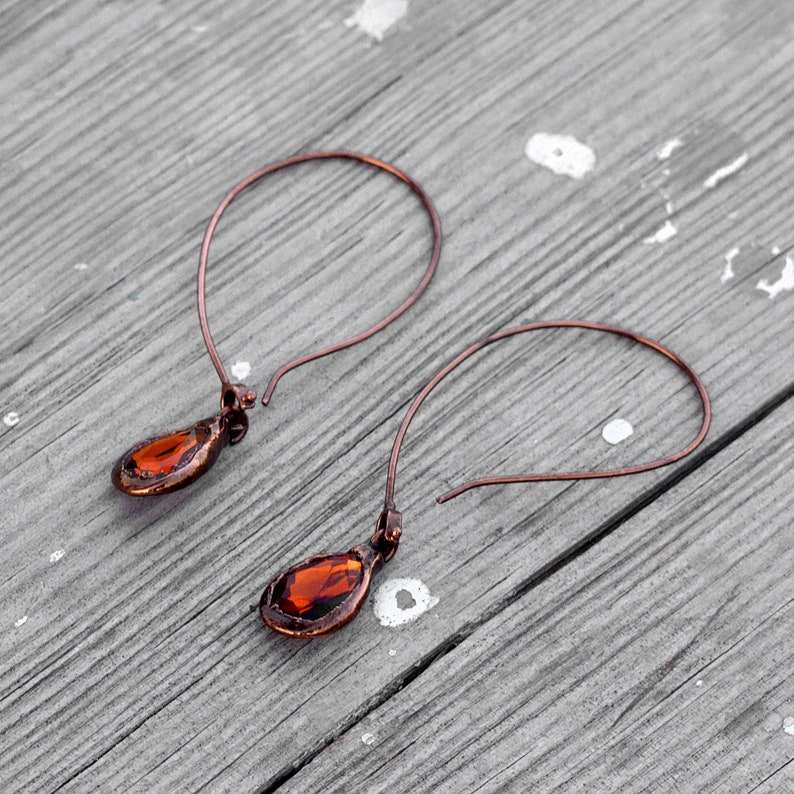 Boucles d'oreilles pendantes en or plaqué avec pierre précieuse en cornaline hydro, design filaire, faites à la main, vintage, bohème, pour femmes, pour les fêtes
