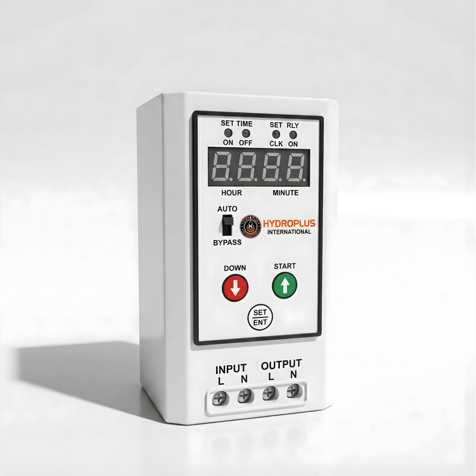 Contrôleur numérique Hydroplus pour la programmation de pompes solaires, l'automatisation de l'irrigation, le remplissage de puits et le contrôle du temps de fonctionnement des réservoirs