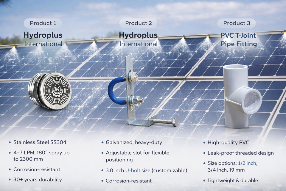 Kit de nettoyage de panneaux solaires Hydroplus International, ensemble de 3 pulvérisateurs à large couverture en acier inoxydable avec pince galvanisée et raccord en PVC en T