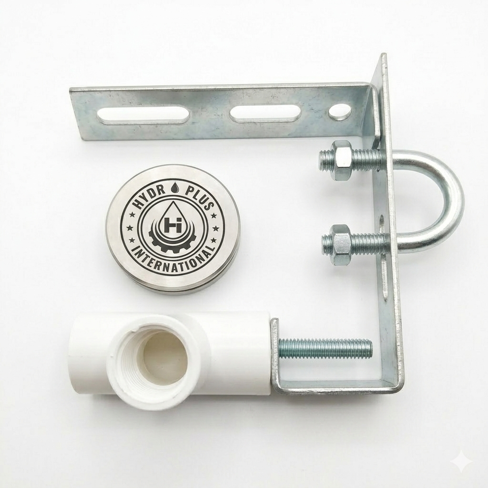 Kit de rinçage pour panneaux solaires Hydroplus International, ensemble de 3 buses à jet en acier inoxydable avec support galvanisé et connecteur en T en PVC