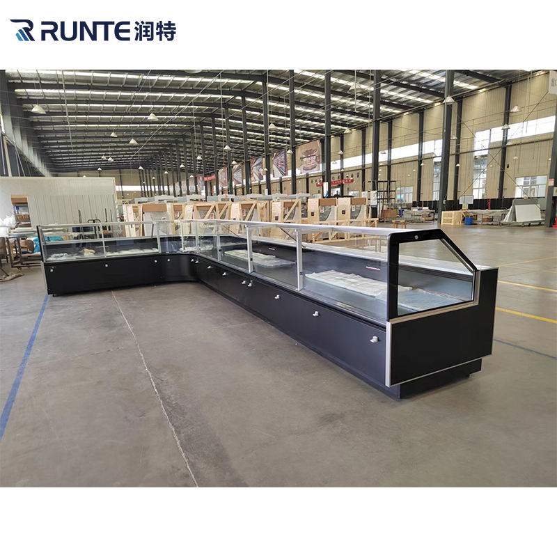 Comptoir présentoir de boucherie hygiénique avec stockage réfrigéré