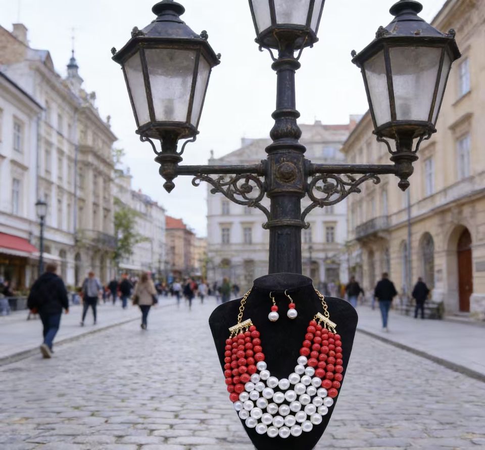 Parure de bijoux Hyperbole plaquée or avec perles d'imitation multicouches pour femme, collier et boucles d'oreilles pendantes, cadeau de mariage