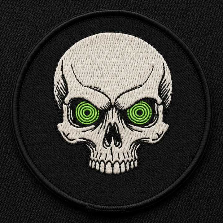 Patch brodé Crâne aux yeux verts hypnotiques, badges thermocollants pour vêtements, applique cercle néon psychédélique, étiquette personnalisée DIY pour blouson de motard