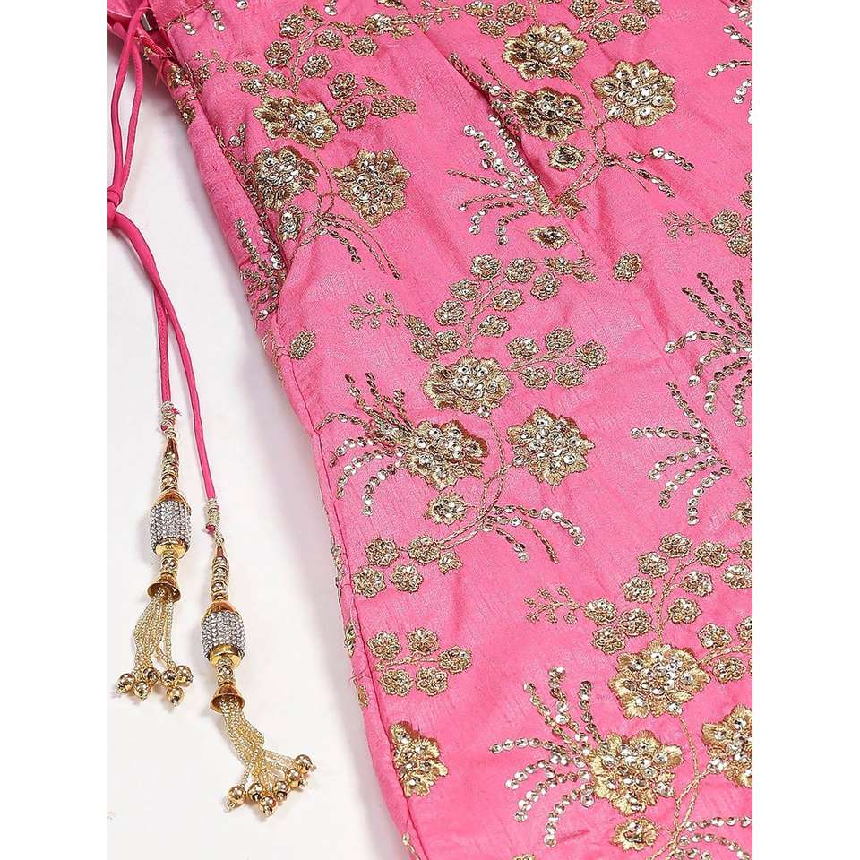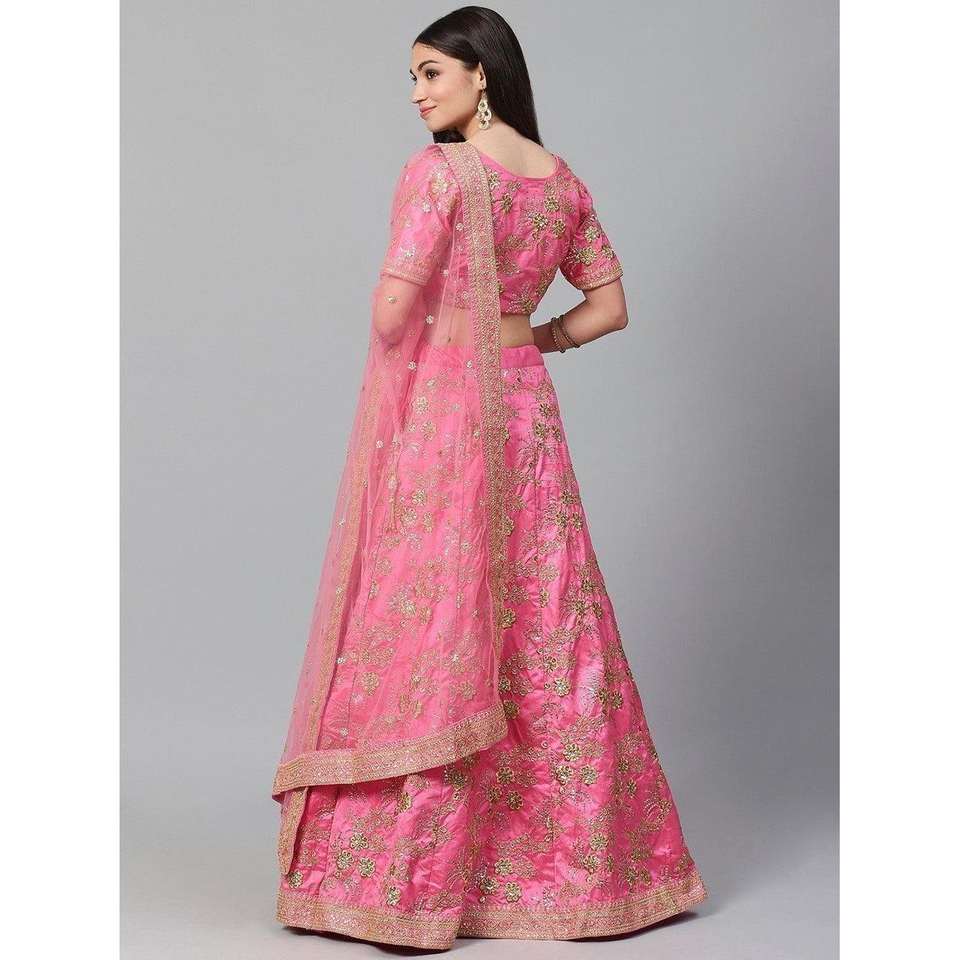 Lehenga Choli semi-cousu en satin brodé rose hypnotique pour mariage, vêtements Zeel