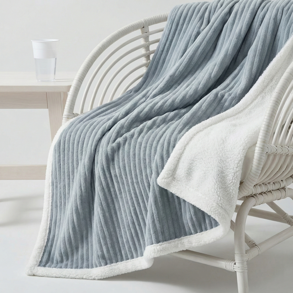 3D Jacquard Ribbed Striped Flannel Fleece Bonded Shu Velveteen Blanket