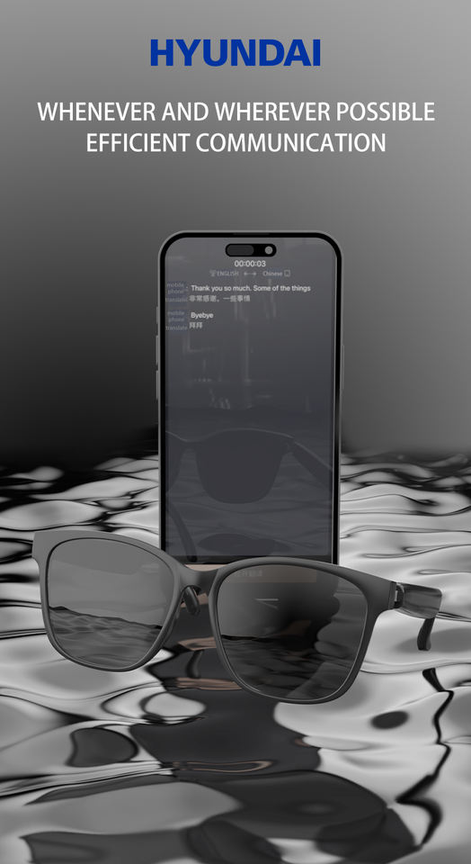 Hyundai HY-C8 Traduction Intelligente par IA Sans Fil pour Lunettes Casque Contrôle Tactile 75 Langues Conférence en Temps Réel