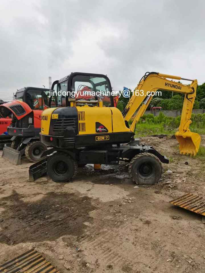 Mini-excavatrice Hyundai ROBEX 60W-7 d'occasion, engin sur roues, 5 tonnes, d'origine Corée, R60W
