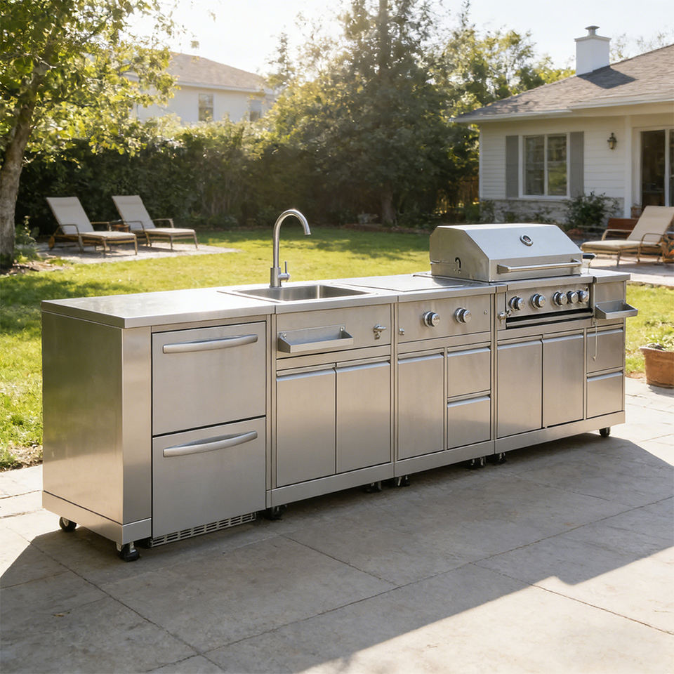 Cuisine extérieure Hyxion Pro Series MKSS304-7 en acier inoxydable 304, four à pizza BBQ, armoire d'angle, cuisine modulaire de jardin KD