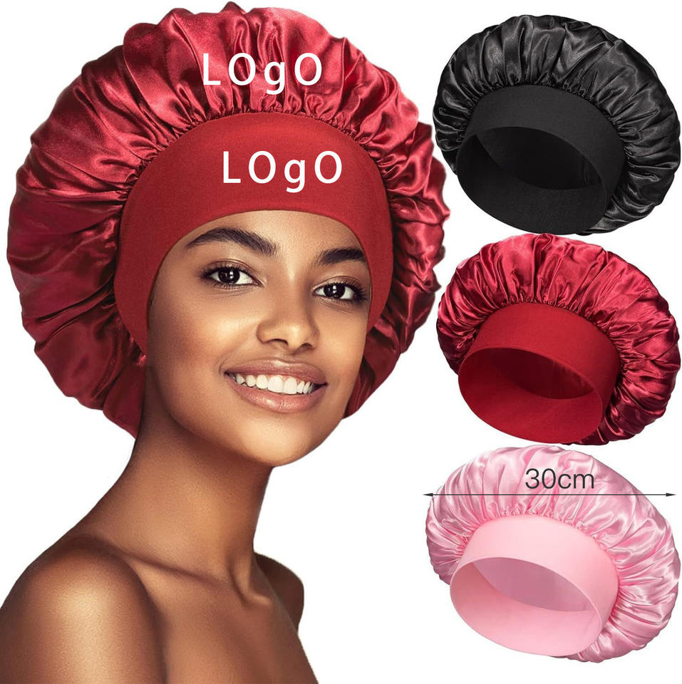 I-0318 Bonnets personnalisés avec logo et bandeaux en satin, bonnets de nuit en satin à large bande, turbans en soie, bonnets élastiques pour cheveux bouclés