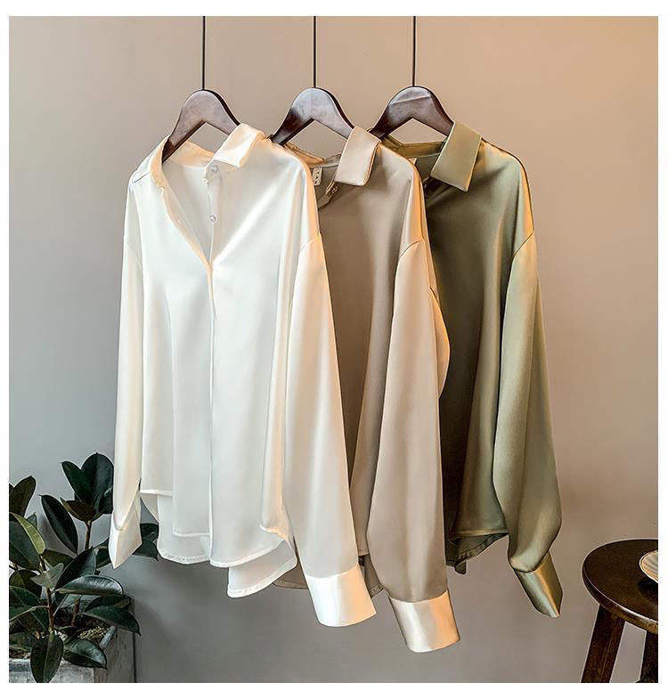 I-0341 Blouse en satin vintage pour femme, col en V, manches longues, tendance printemps