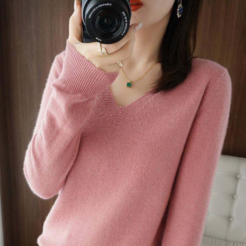 I-0381 Sweaters Women Casual V-neck Solid Jumpers Pullovers Spring Autumn Womens Sweater Cashmere Knitwear Bottoming Shirt