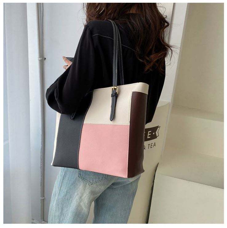 I-0643 Nouveau sac fourre-tout tendance à contraste de couleurs, grande capacité, sac à bandoulière pour femmes, sacs fourre-tout en cuir PU en gros