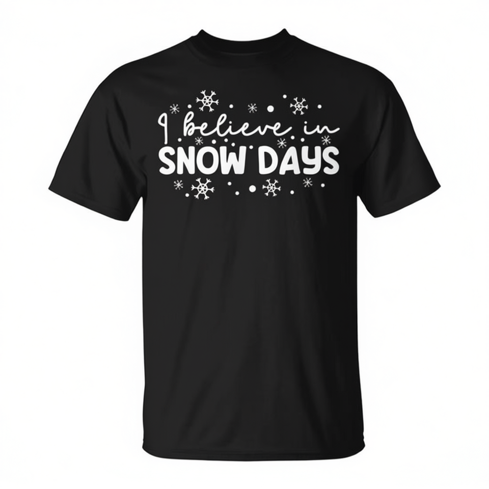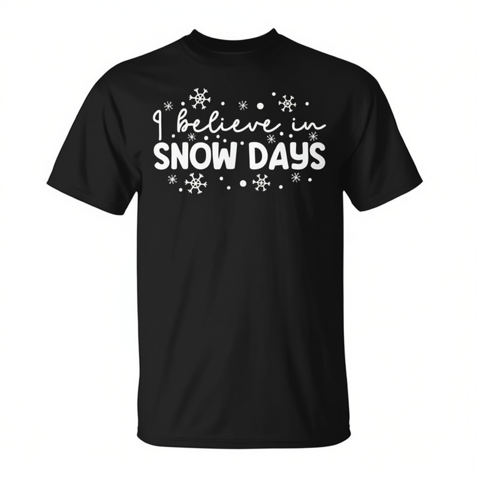 T-shirt I Believe In Snow Days noir unisexe pour adulte, col rond, manches courtes, taille moyenne