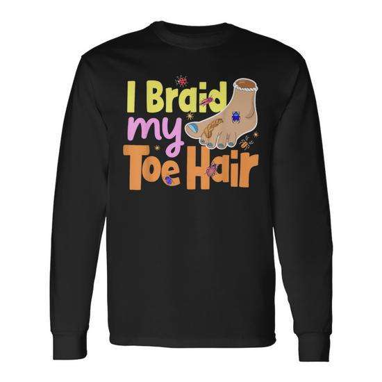 T-shirt à manches longues « I Braid My Toe Hair » – Cadeau drôle et original pour adulte unisexe, col rond, impression numérique