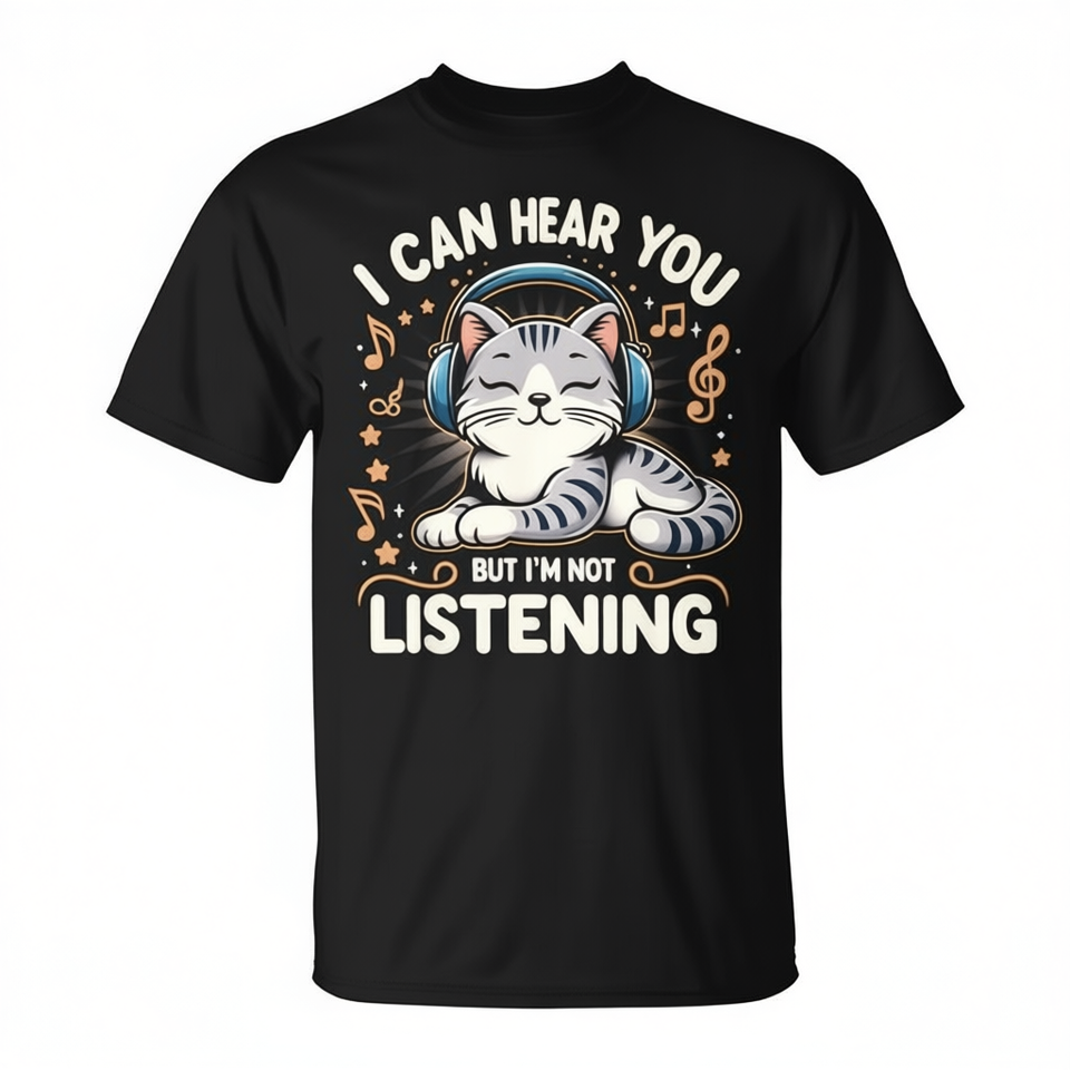Je peux entendre votre voix, mais je ne vous écoute pas - T-shirt Chat avec écouteurs