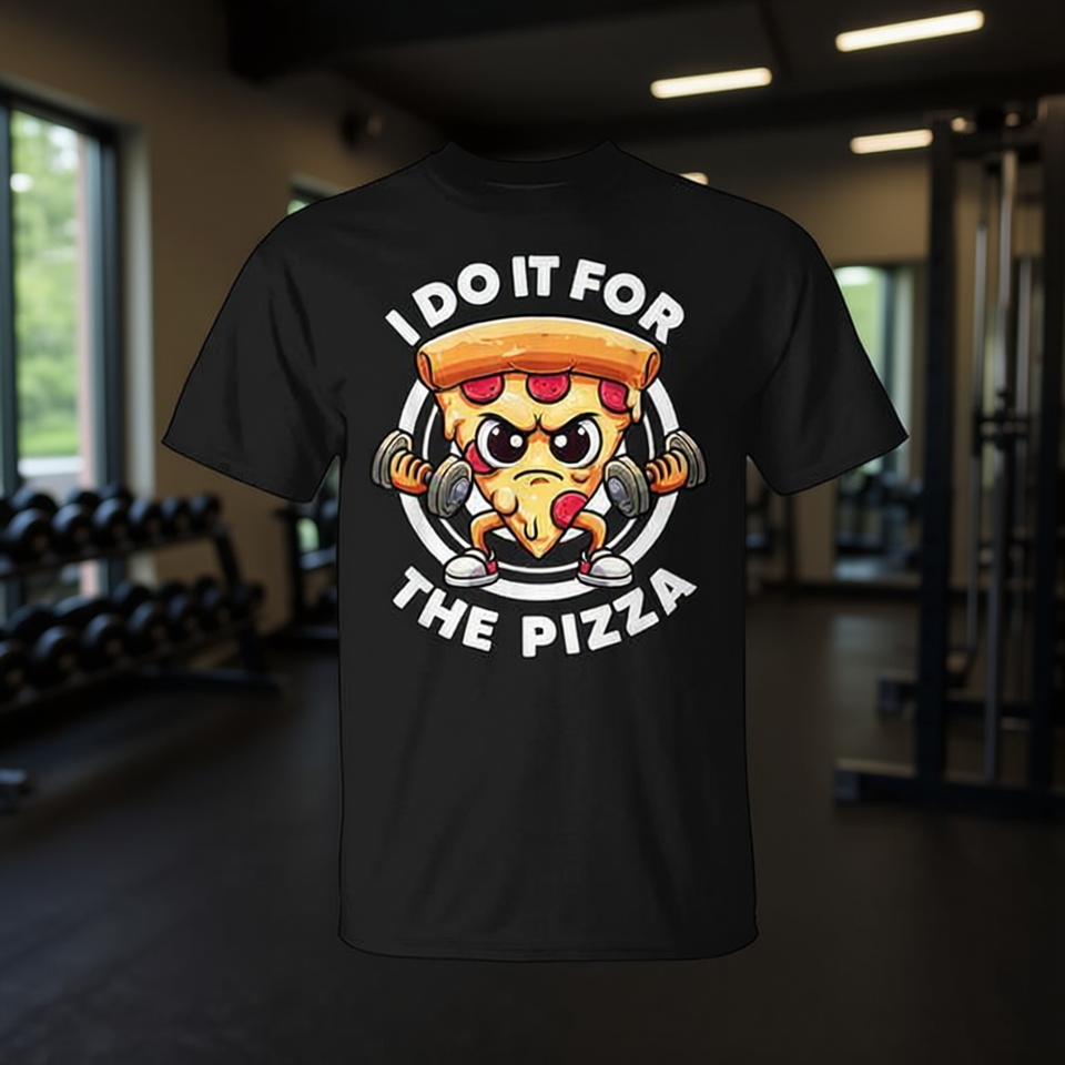 T-shirt promotionnel « I Do It for the Pizza » avec citations sur l'entraînement et la gym – Vêtements de fitness pour la salle de sport