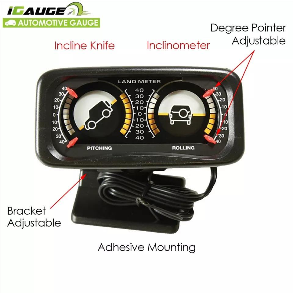 Clinomètre universel pour voiture I Gauge IGMLM-CA, finition noire, 12V, double inclinaison pour camion lourd, camionnette