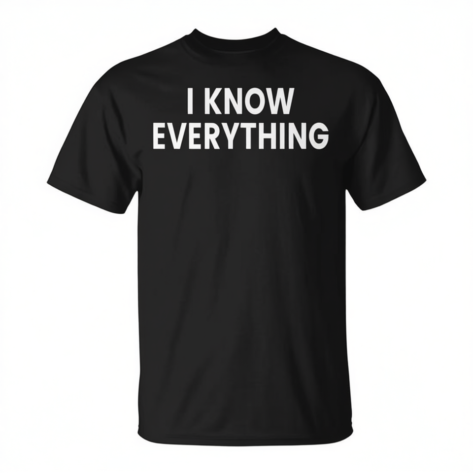 T-shirt classique à manches courtes et col rond pour femme, coupe régulière, en mélange coton et polyester, taille S, « I Know Everything »