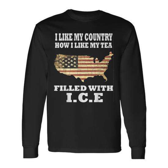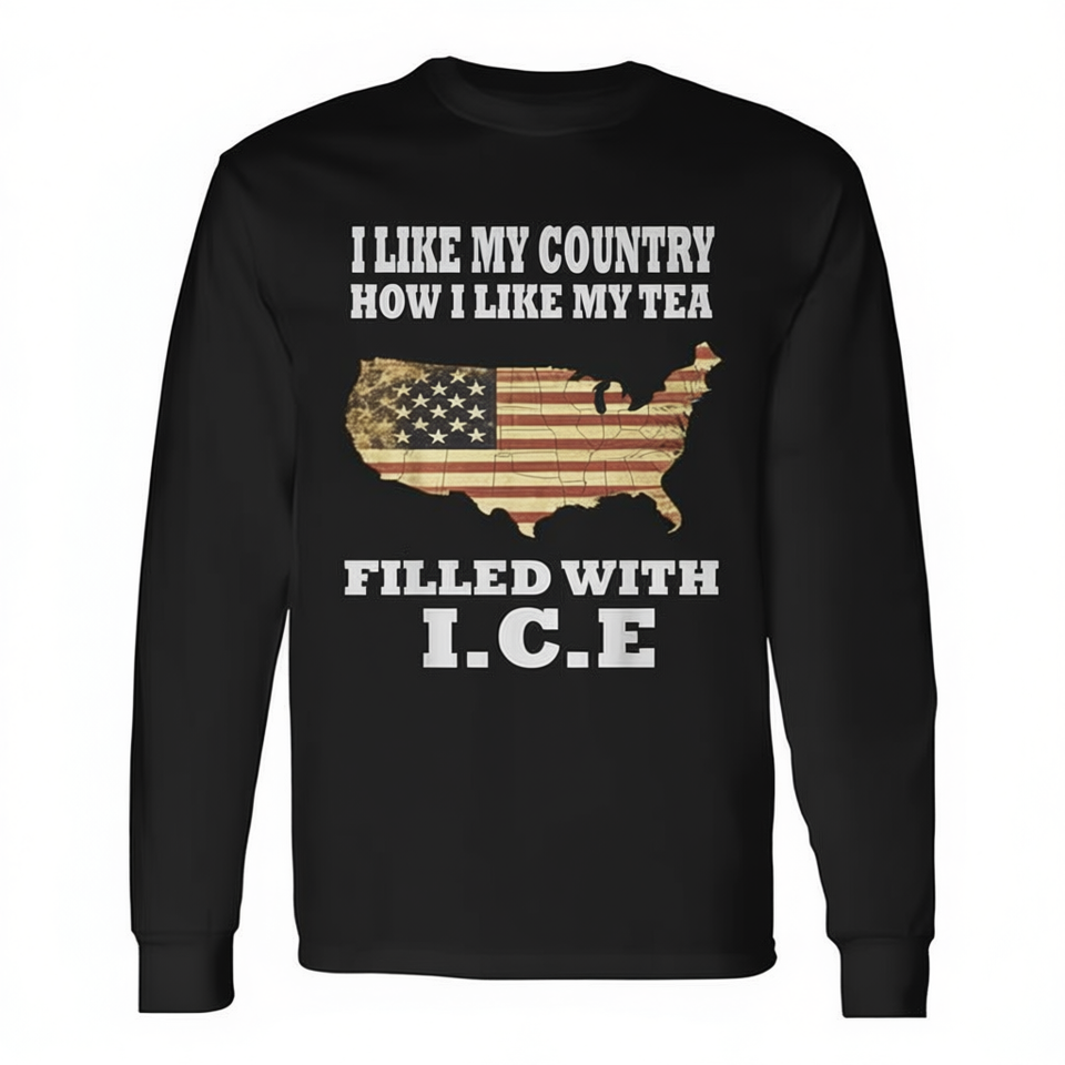 T-shirt promotionnel unisexe à manches longues et col rond, imprimé sérigraphié « J'aime mon pays comme je aime mon thé glacé »