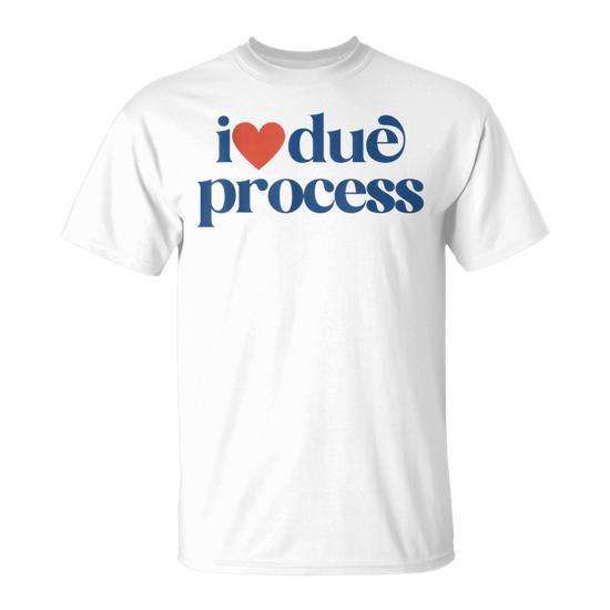 T-shirt I Love Due Process blanc unisexe taille adulte moyenne