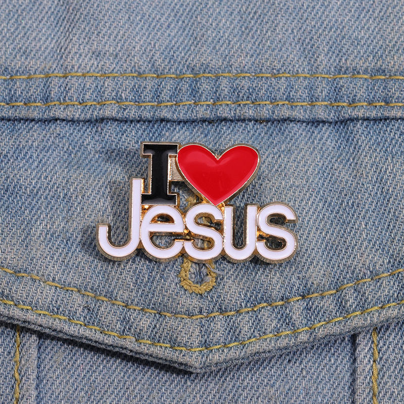 J'aime jésus émail broche personnalisé jésus aime moi coeur rouge Badge revers vêtements broche sac à dos chapeau bijoux cadeaux pour la croyance du Christ