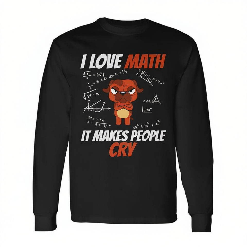 T-shirt promotionnel à manches longues « J'aime les mathématiques, ça fait pleurer les gens » - Mathématiques - Professeur de mathématiques - Genius des mathématiques - Chien