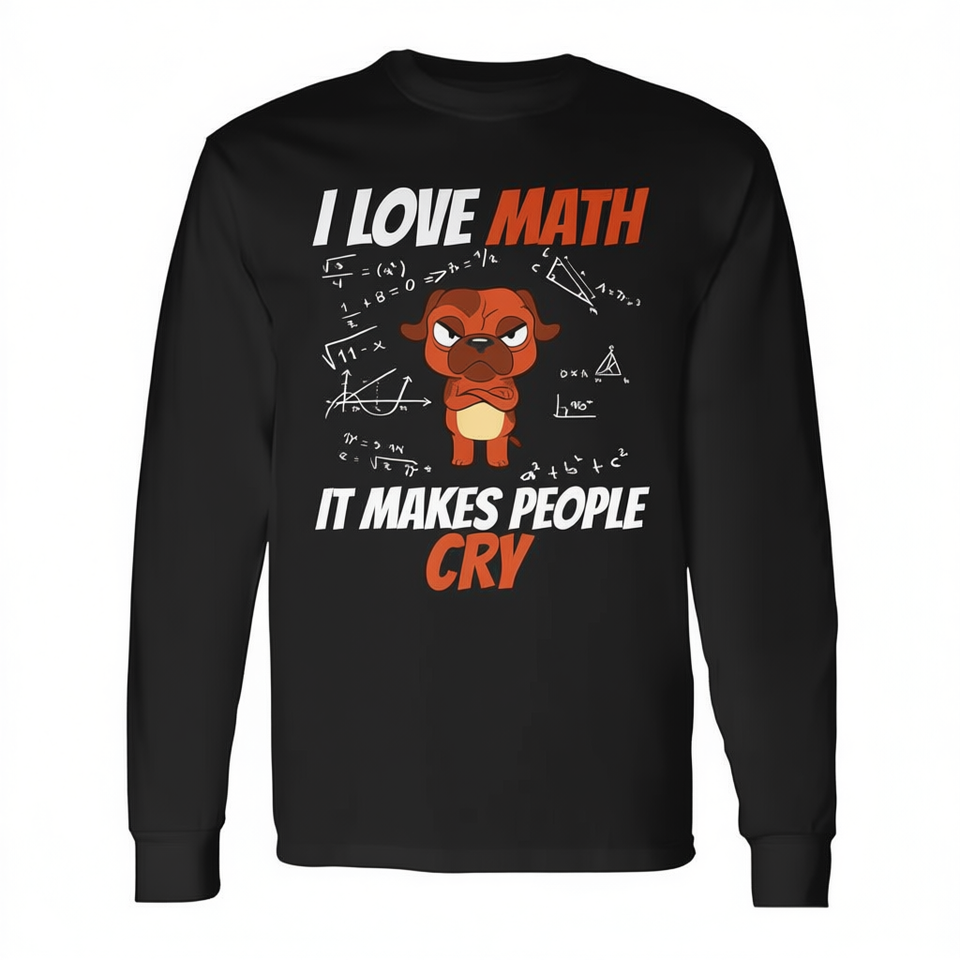 T-shirt promotionnel à manches longues « J'aime les mathématiques, ça fait pleurer les gens » - Mathématiques - Professeur de mathématiques - Genius des mathématiques - Chien