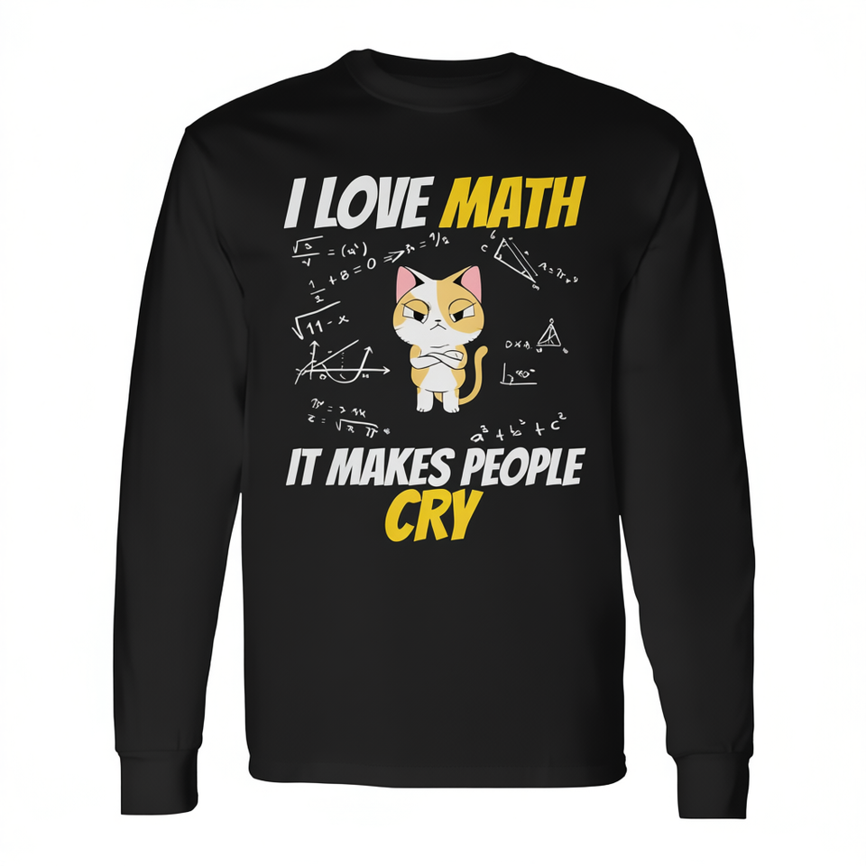 T-shirt à manches longues « J'aime les mathématiques, ça fait pleurer les gens » pour professeur de mathématiques, design de génie mathématique